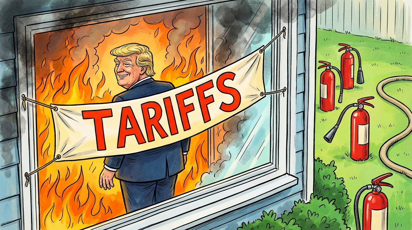 这时,原本喊得最响的那些人却突然竖起了围栏,说:“不,你生产的灭火器太多了,这破坏了我们本地昂贵灭火器工厂的生意。为了‘公平’,我们要给你的灭火器加征高额关税。”